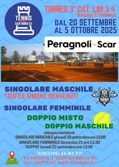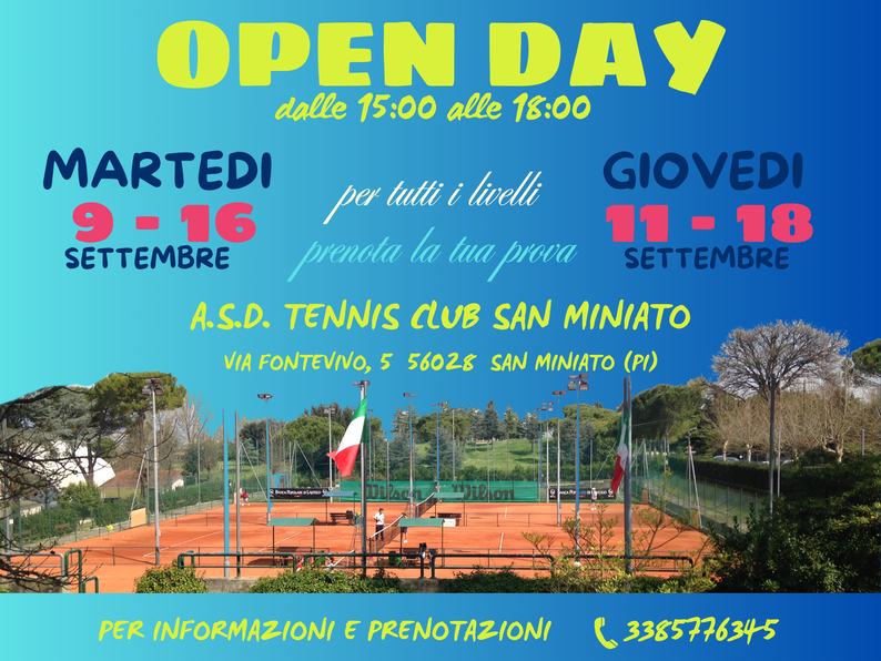 per informazioni e prenotazioni contattare la segreteria del Tennis Club al 3385776345