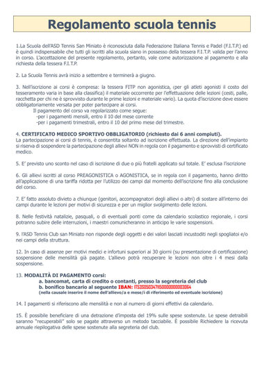 (PRESSO LA SEGRETERIA DEL CLUB) E PAGATA LA RELATIVA QUOTA ISCRIZIONE ANNUALE.